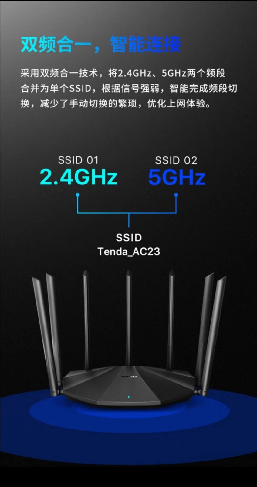 商品名称:腾达(Tenda)AC23 双千兆路由器 2100M无线家用 5G双频 千兆端口 光纤宽带WIFI穿墙 内配千兆网线